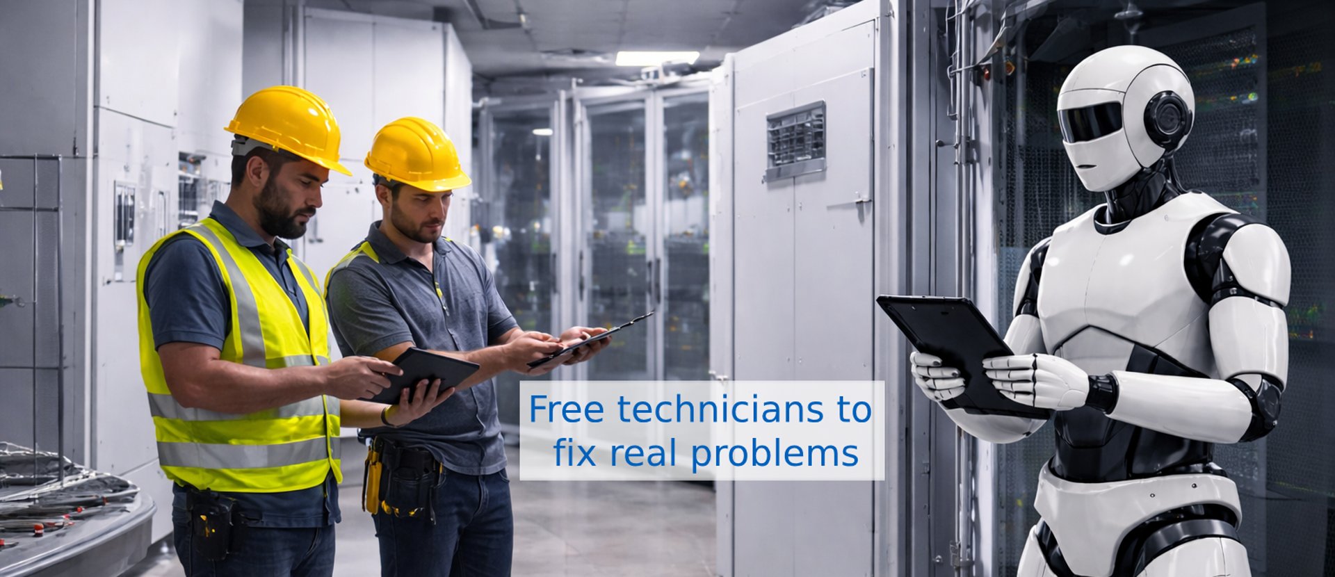 We amplify your team, not replace it. By handling repetitive inspection tasks, we free your skilled technicians to focus on what they do best: diagnosing issues, performing maintenance, and keeping critical systems running 24/7. Currently deployed in pilot programs across industrial and commercial facilities.